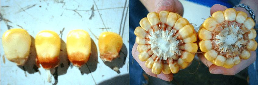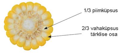 Jaluta põllule vähemalt 5-10 m põlluservast, murra tõlvik pooleks ning vaata tõlviku piimajoont. 1/3 terast peab olema piimküpsuse faasis ja 2/3 vahaküpsuse faasis. Kindluse mõttes on õige ka tera pigistada: õige koristusküpsus on saavutatud siis, kui maisitera pigistamisel on sisuks nn "vedel juust".