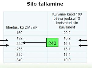 Tallamise eesmärgiks on silomassi tihedus 240 kg/m3.
