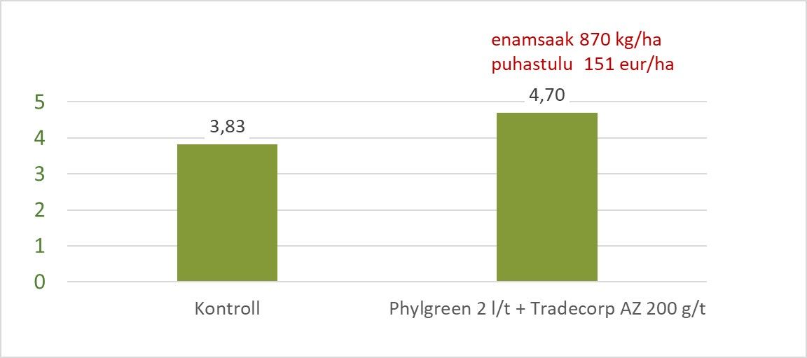 *Oluline on märkida, et kontrollvariandi nii suure saagikuse taga on aastate pikkune erinevate tehnoloogiate kasutamisega tehtud töö mullaviljakuse parandamisel.